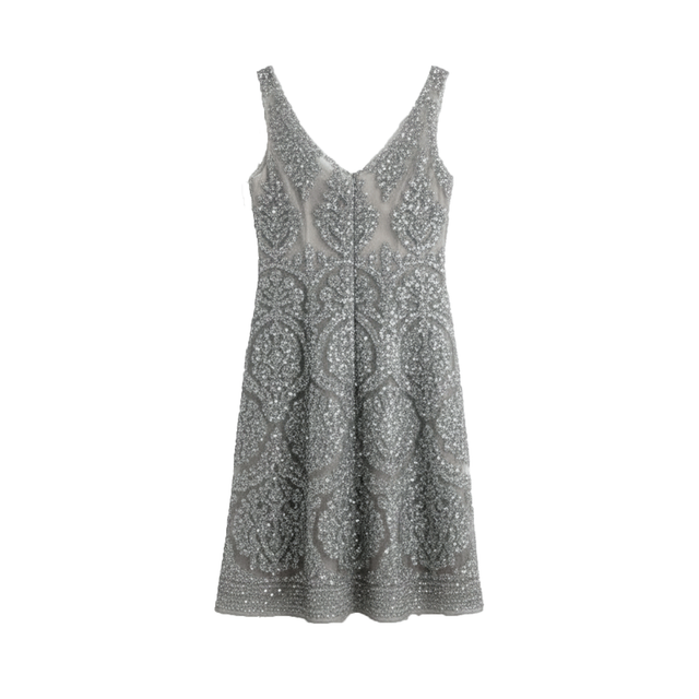 2. DETAILS: INTRICATE ORNAMENTAL PATTERNS WITH THOUSANDS OF HAND-APPLIED IRIDESCENT BEADS