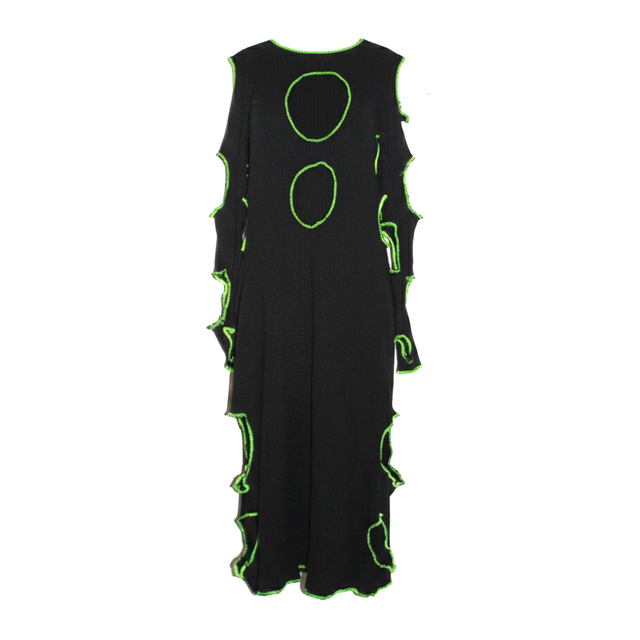 - CONSTRUCTION: CUT-OUT BODY DETAILING WITH NEON SERGED EDGES