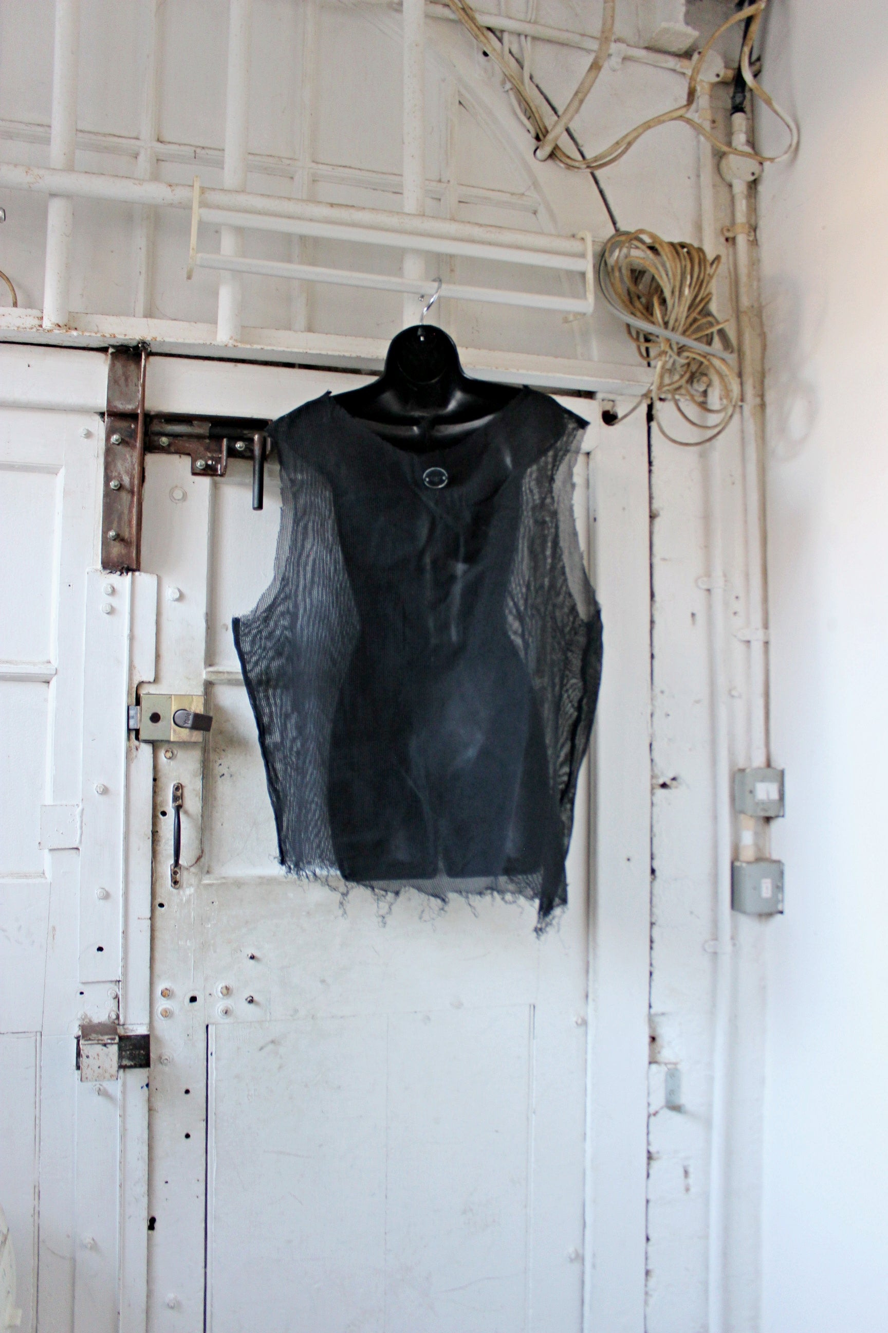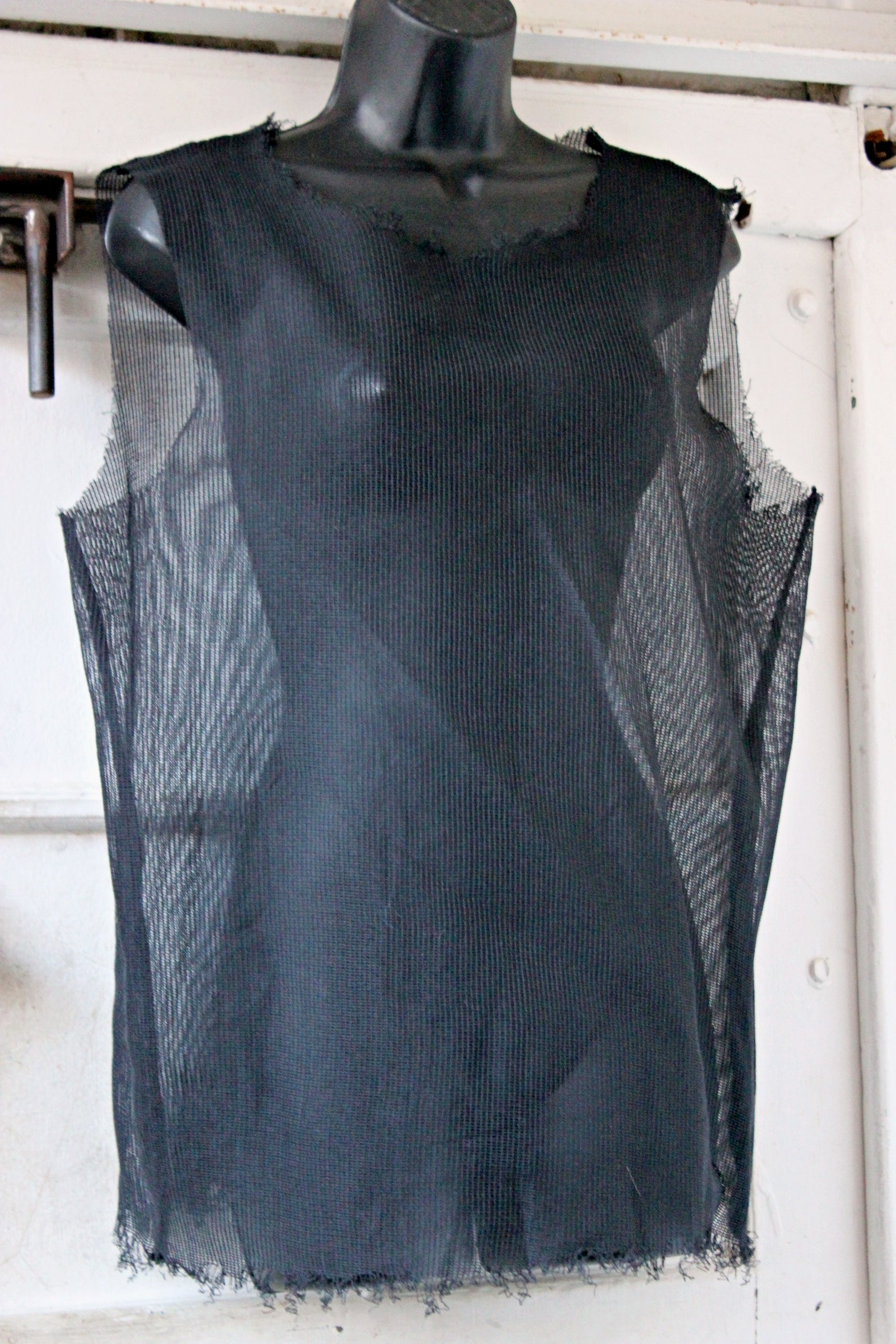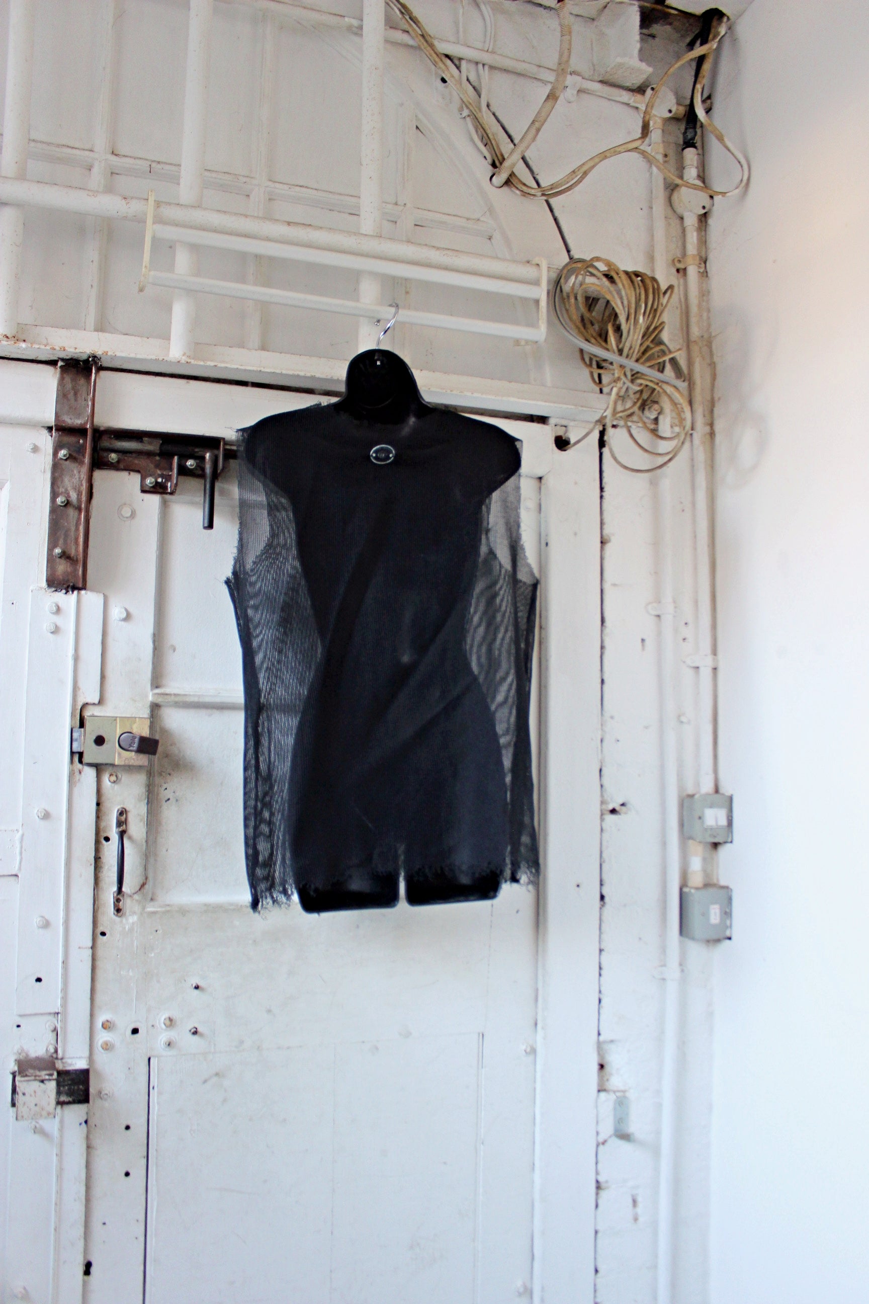 Made from deadstock fabric, this sheer, breathable mesh top is both stylish and sustainable. A versatile piece perfect for layering or making a bold statement.