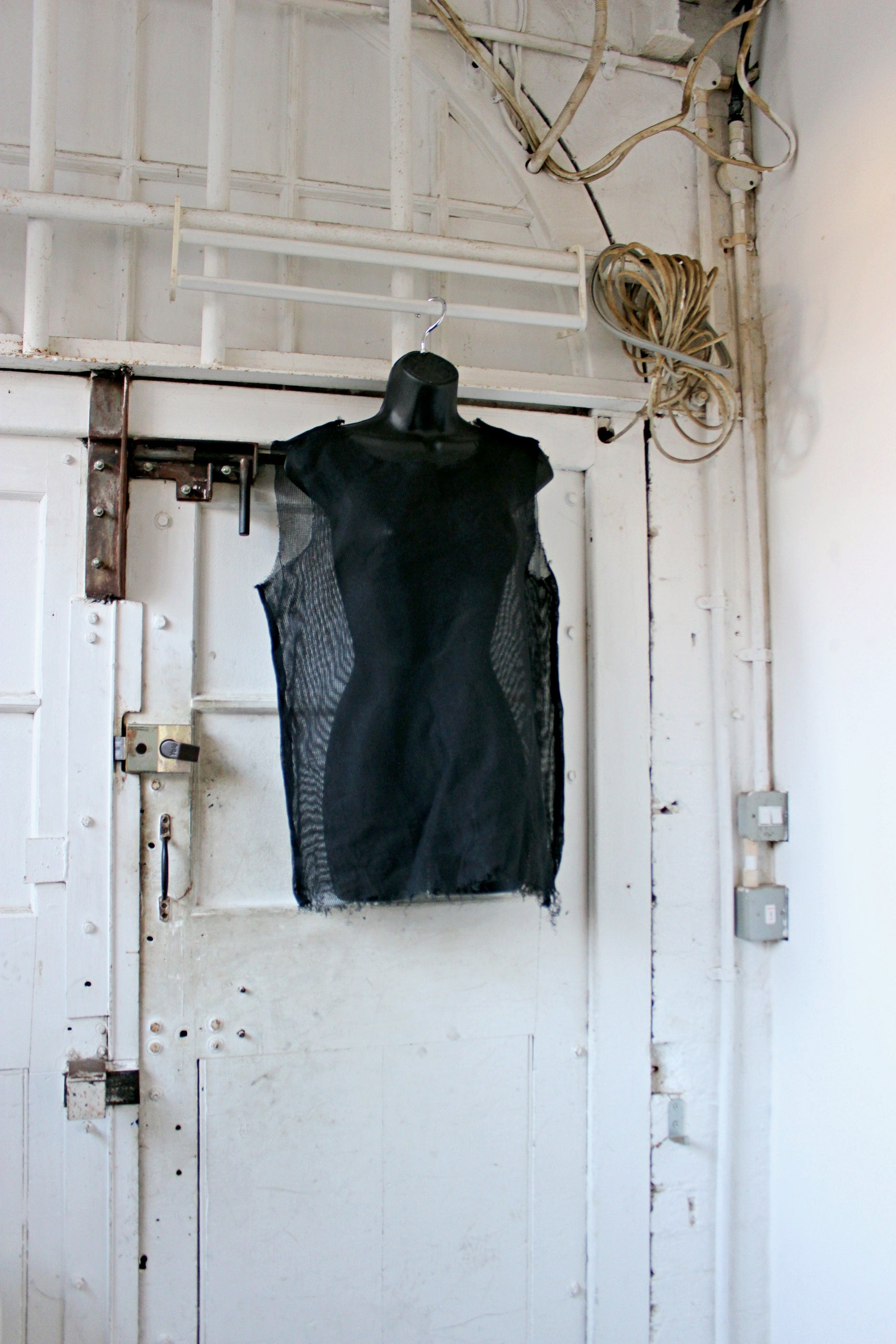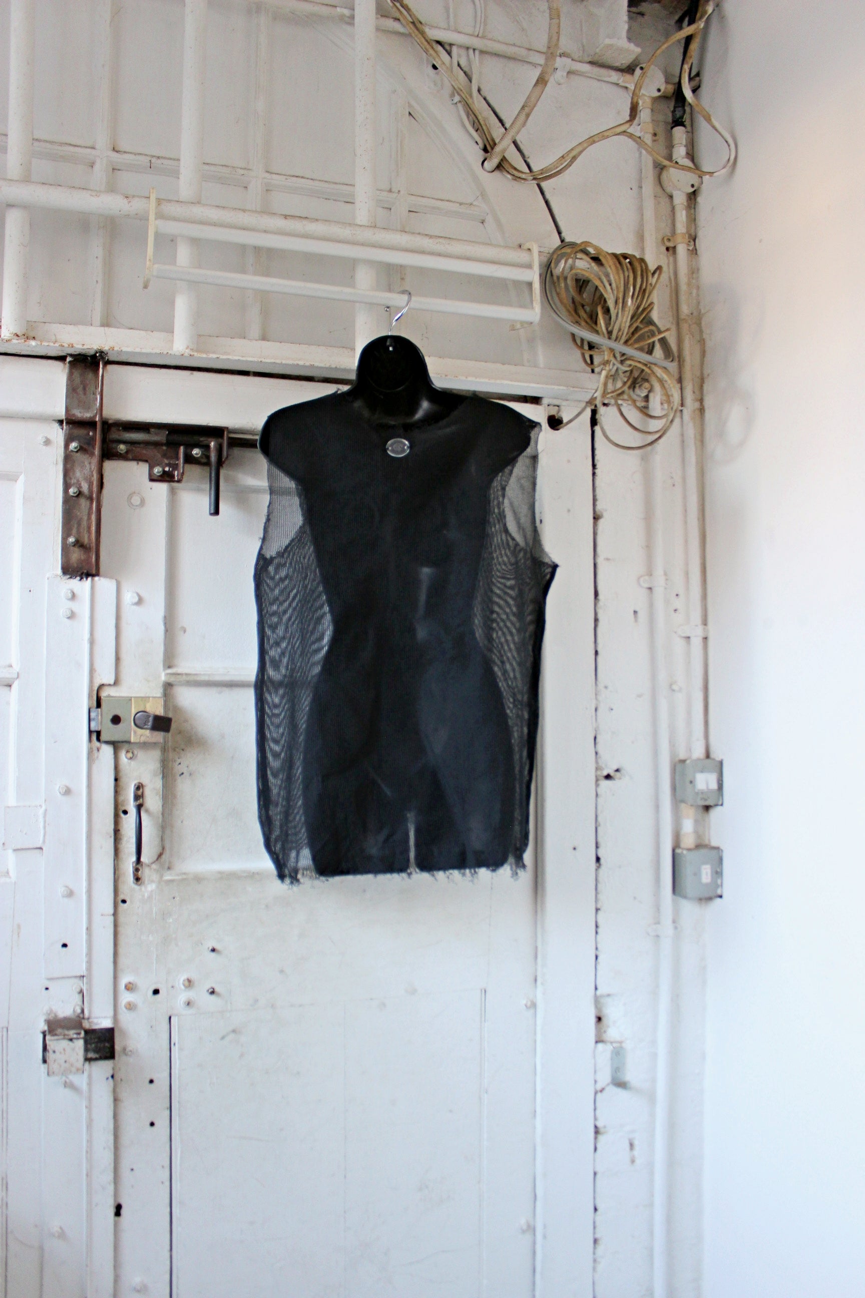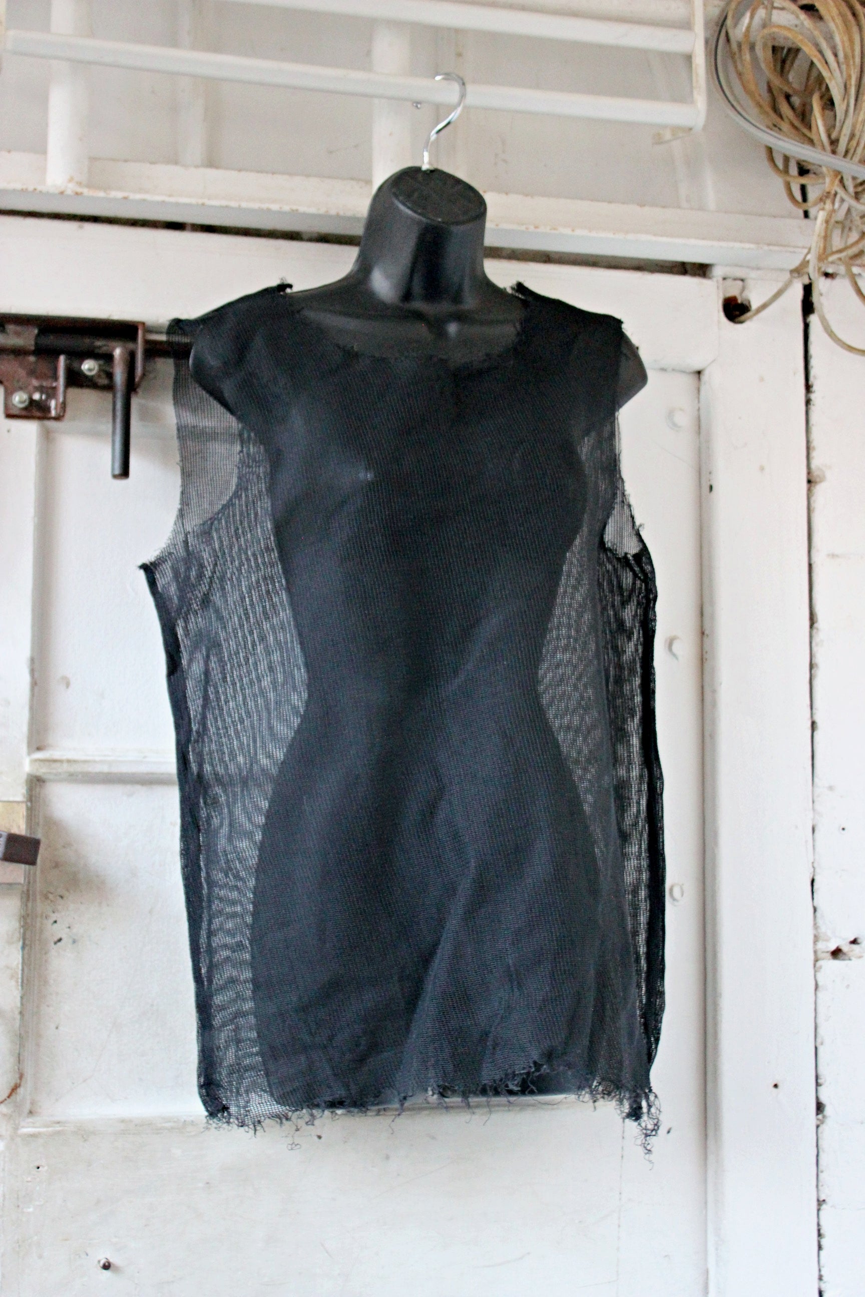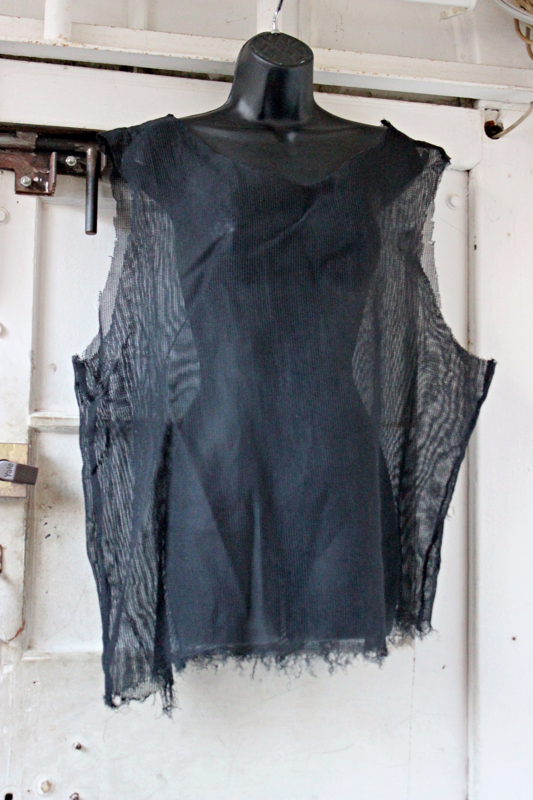 Made from deadstock fabric, this sheer, breathable mesh top is both stylish and sustainable. A versatile piece perfect for layering or making a bold statement.